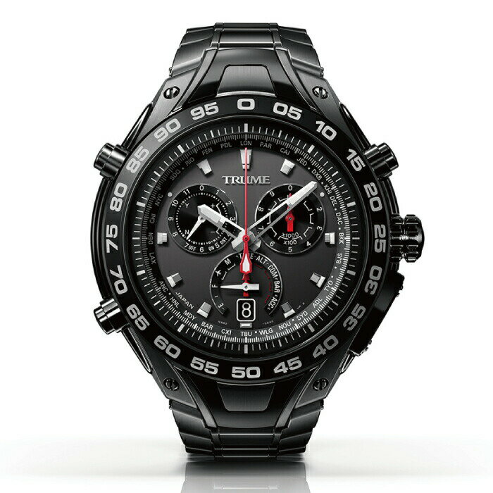 TRUME -L collection- 品番 TR-MB8002 駆動 ライトチャージGPS衛星電波修正 ケース材質 チタン(ベゼル部:セラミック) ケースコーティング プロテクトコーディング(表面硬化処理) バンド材質 チタン バンド幅(かん幅) 20mm ガラス材質 サファイアガラス ガラスコーティング SARコーティング(両面無反射コーティング) 蓄光 ルミナスライト(針・インデックス) サイズ 縦60.2mm×横48.6mm×厚さ15.5mm(ボタン・りゅうず含まず) 重量 約135g 手首同長 メタルバンド:110mm〜200mm 精度 平均月差:±15秒 電池 リチウムイオン二次電池 駆動時間 約6ヶ月:フル充電でパワーセーブが作動せず且つ充電もしない場合 約2年:フル充電でスリープ機能が作動した場合 充電 ライトチャージ 防水 10気圧防水(日常生活用強化防水) 内蔵センサー GPSセンサー/気圧・高度センサー/方位センサー 無線通信 Bluetooth(エクスパンデッドセンサーとの通信のみ可) 動作温度 -10℃〜+60℃ GPS衛星電波受信 タイムゾーン設定機能、自動時刻受信機能、手動時刻受信機能 機内モード設定 無線通信・GPS受信・センサー計測オフ 針位置自動修正機能 ○ スリープ機能 ○ 電池残量表示機能 ○ ワールドタイム機能 全世界39タイムゾーン 29都市 サマータイム(DST) on-off ○ ストップウオッチ 0時0分0秒〜最大99分59.8秒計測(1/5秒単位) 気圧計測 表示:300〜1,100hPa 最小単位:1hPa 気圧傾向 [+],[−](11段階表示) (手動)最大1分間 高度計測 表示:-1,000m〜9,999m 最小単位:1m 方位計測 表示:センター針により北方を指示、偏角補正機能有り 最小単位:1.2° ウェイポイント 距離(基準位置までの)表示:0〜9,900m 最小単位:100m 方位(基準位置の方向)表示:小秒針にて指示 最小単位:6° 方位(北方向)表示:センター針により指示 最小単位:1.2° ログ記録 高度:11件/気圧:11件/UVインデックス・温度・歩数・消費カロリー:合計で11件 パーペチュアルカレンダー機能(日付表示) ○ りゅうず ねじ式りゅうず エクスパンデッドセンサー ケース材質 プラスチック(一部メタル) サイズ 縦54.6mm×横39.3mm×厚さ10mm(クリップ部除く) 重量 約21.0g(電池含む) 表示 LED 電池 CR2032(コイン型リチウム電池) 駆動時間 25℃の環境下にて6ヶ月(使用条件によります) 防水 IPX5 動作温度 -10℃〜+60℃ UVインデックス計測 1〜15 温度計測 -10℃〜+60℃ 歩数計測 0〜99,999歩 消費カロリー計測 0〜9,999kcal 電池交換表示 ○※詳細とお申込み方法はトゥルーム公式サイトにてご確認ください。