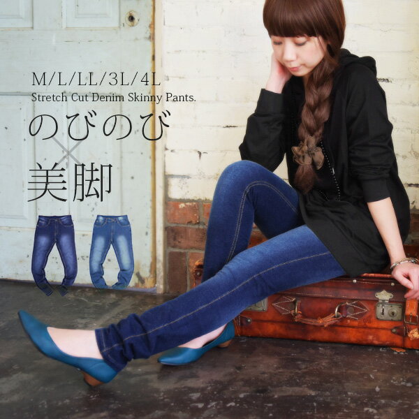 【受注発注】のびのびストレッチカットデニムスキニーパンツ【メール便不可】【M】【L】【LL】【3L】【4L】(レディース スキニー パンツ レギパン デニムパンツ ジーンズ デニム レギンス 大人カジュアル 大きいサイズ レギンスパンツ スキニージーンズ ボトムス 春夏 春服)