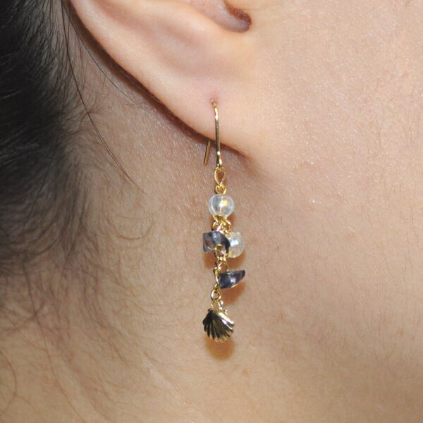 シェルモチーフを使った夏らしいさわやかピアス (日本製) [キャンセル・変更・返品不可]